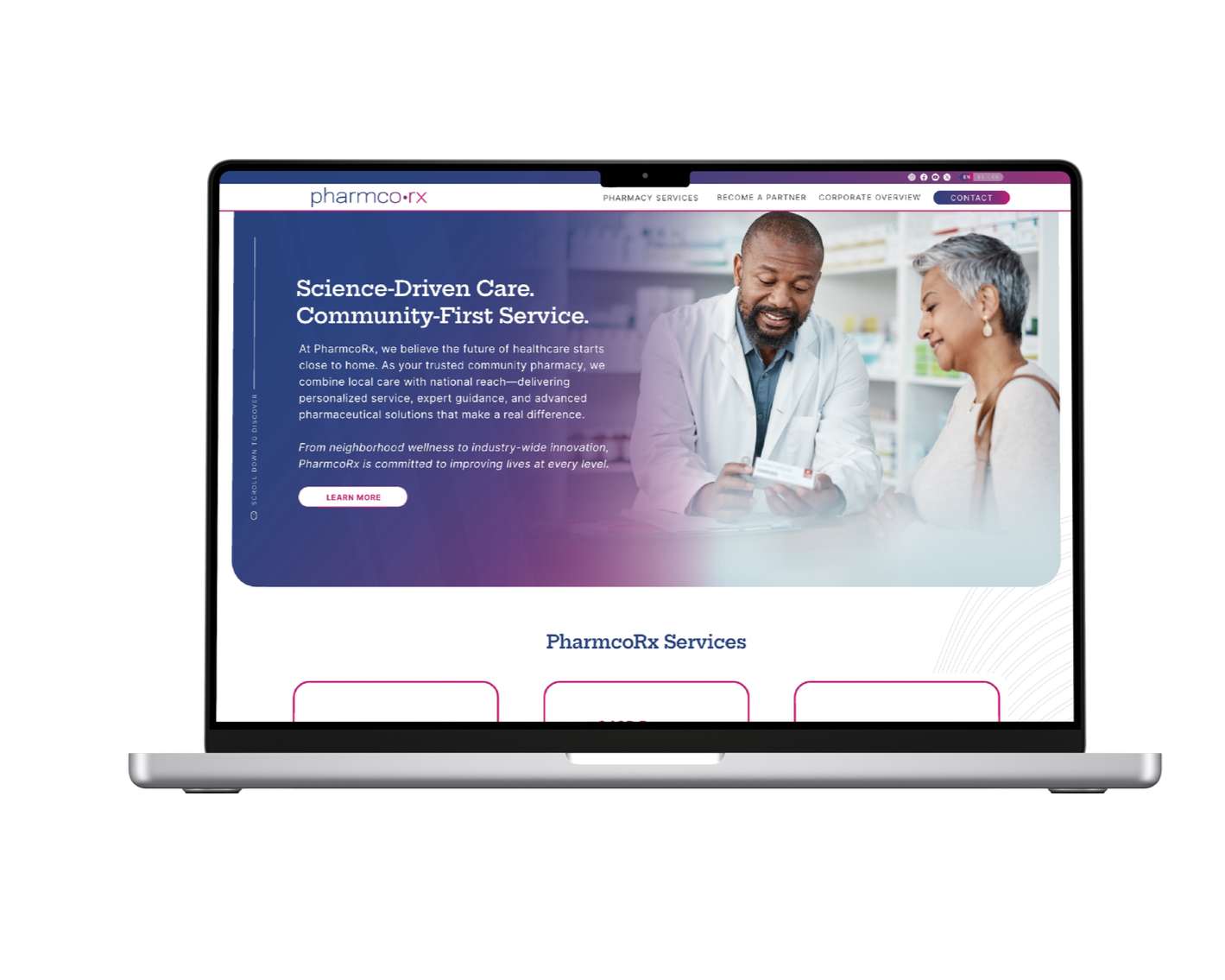 A modern digital redesign for Pharmco-Rx, delivering a user-centered experience that reflects their commitment to innovation in healthcare.
