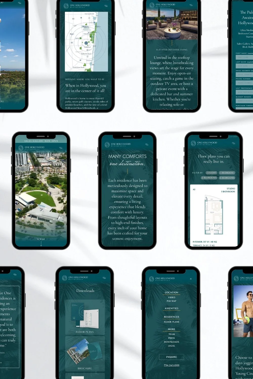 A cohesive brand and digital identity for a modern residential development located in Hollywood, Florida.